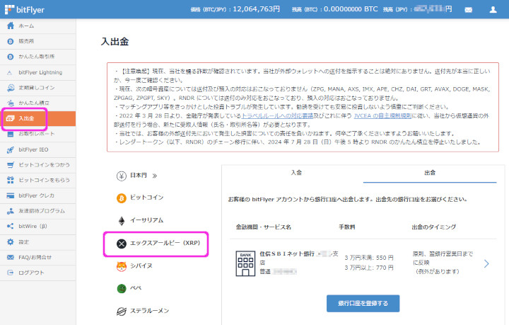 暗号資産XRPで入出金