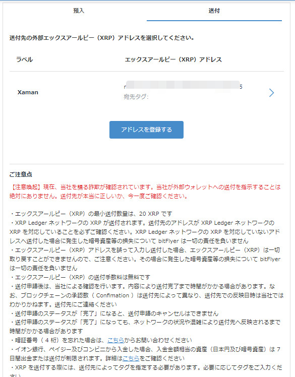 bitFlyer -> XRPでウォレットのXaman