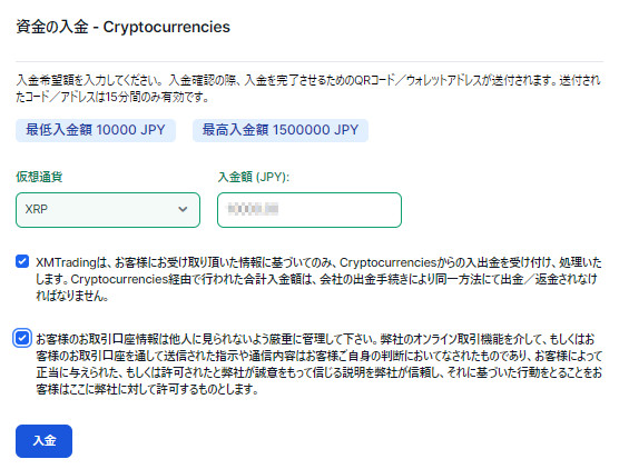 - プライベートウォレットから暗号資産をXM(海外FXブローカー)へ送付